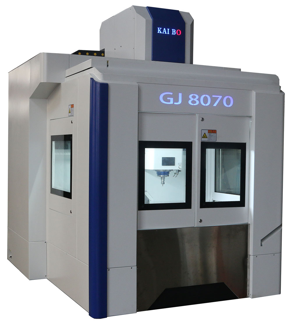 GJ代表凱博數(shù)控高速精密數(shù)控雕銑機(jī)系列,GJ-8070是以DC-8070A為原型,加大了導(dǎo)軌、絲桿、行程和主軸功率,機(jī)床采用高精密滾針直線導(dǎo)軌,剛性更強(qiáng),配備發(fā)那科系統(tǒng),是一款集大刀、小刀加工為一體的生產(chǎn)利器。